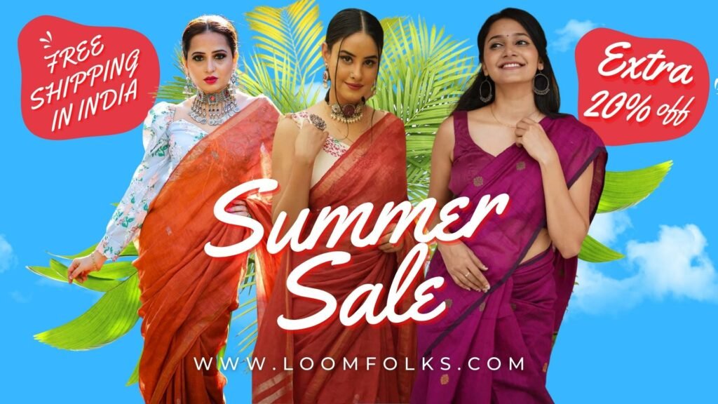 Loomfolks Summer Sale is Live 😍 Now shop from 2000+ Handloom sarees at EXTRA 20% OFF by applying coupon code FOLKS20. Free Shipping in India 🇮🇳 Cash on delivery Available.