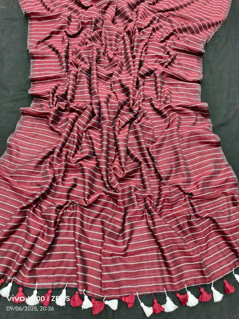 Coral Red Stripe Design Mul Cotton Saree With Running Blouse