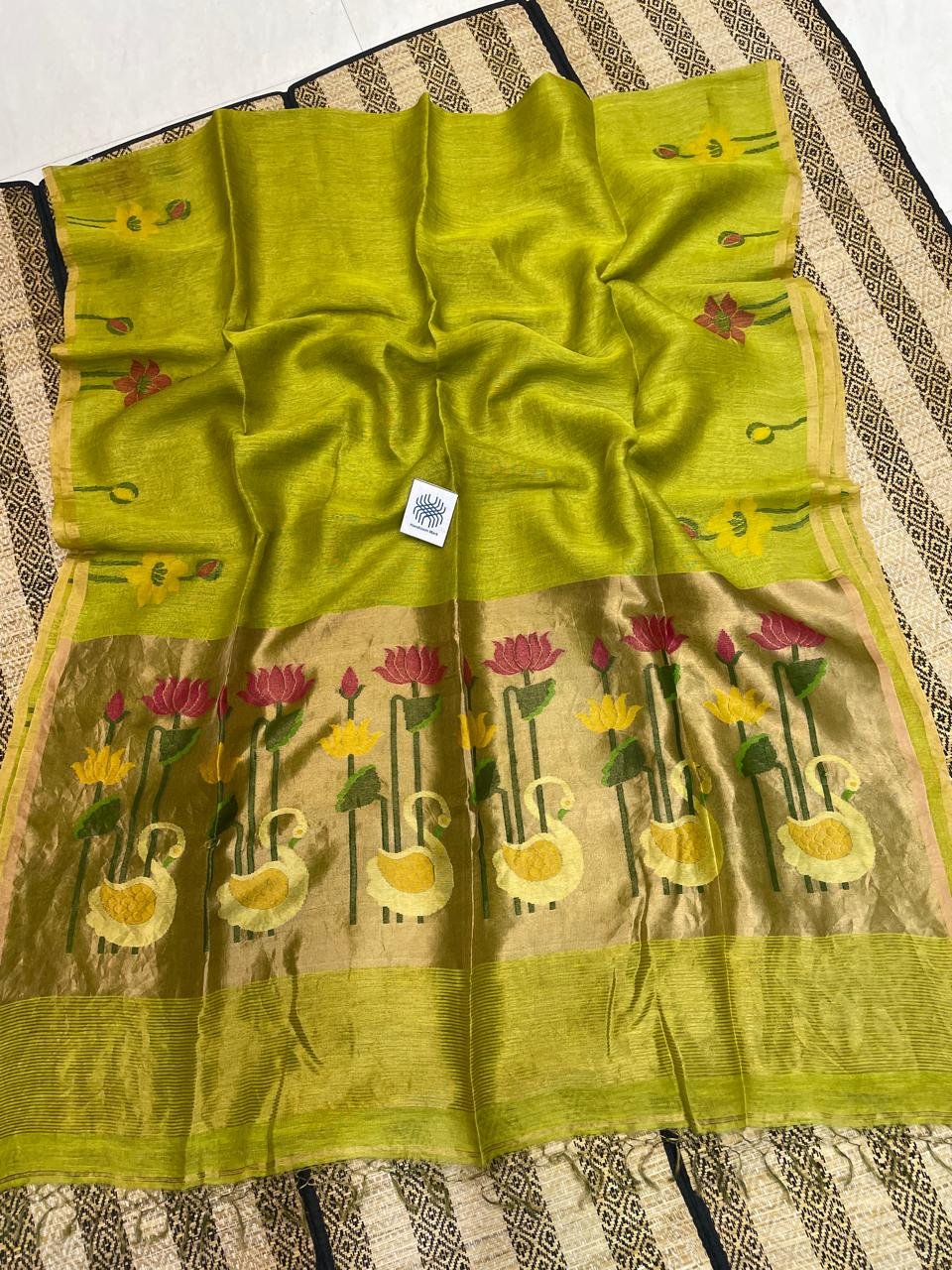 Green Premium Quality Tissue Linen Saree With Paithani Pallu