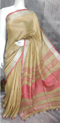 This beautiful saree is made from high-quality linen fabric in a lovely shade of light brown that is both earthy and elegant. The saree features a plain, solid color design that is simple and versatile, making it a perfect choice for various occasions.