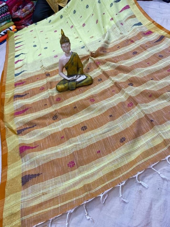 This stunning saree is a beautiful example of the traditional Jamdani weaving technique, which is known for its intricate designs and patterns. The saree is made of high-quality cotton, which makes it lightweight and comfortable to wear.