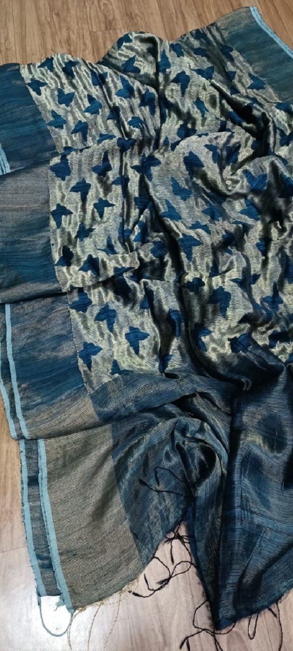 Magnificent Teal Blue Butterfly Weave Handloom Matka Silk Saree