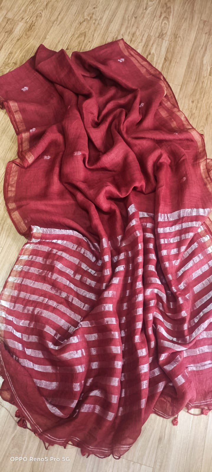 Mesmerizing Maroon Handwoven Linen Saree With Small Butti Design
