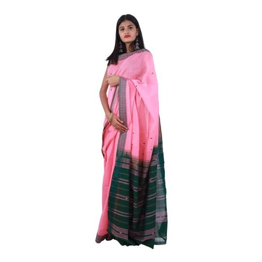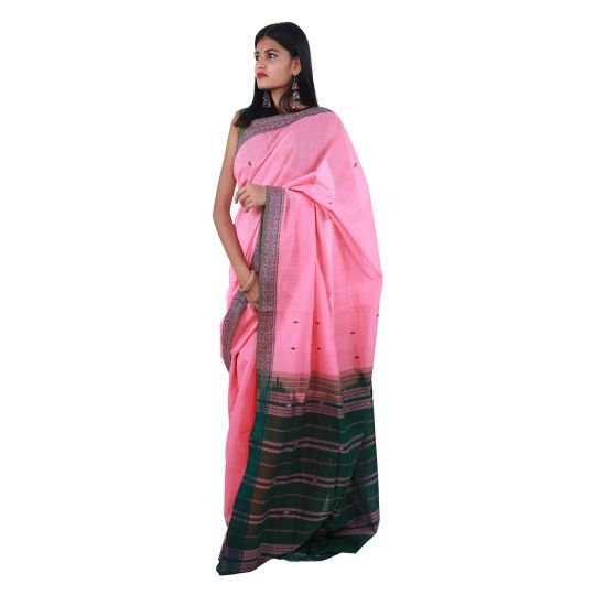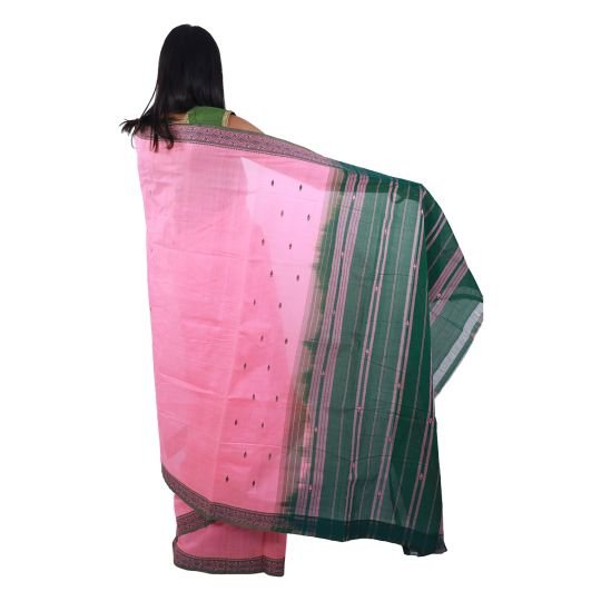APCO (The Andhra Pradesh State Handloom Weavers Cooperative Society Ltd) brings you a beautiful Bandar saree with rich zari and thread butta. Handwoven using extremely fine cotton yarn by the weavers of Machilipatnam, most Bandar sarees display dobby pattu borders and cotton butta. The colours vary from gorgeous pastel shades to striking dark shades to suit the taste of both urban and rural women. With the latest designs, these sarees of 5.4m length can be worn as daily wear or for any casual event.