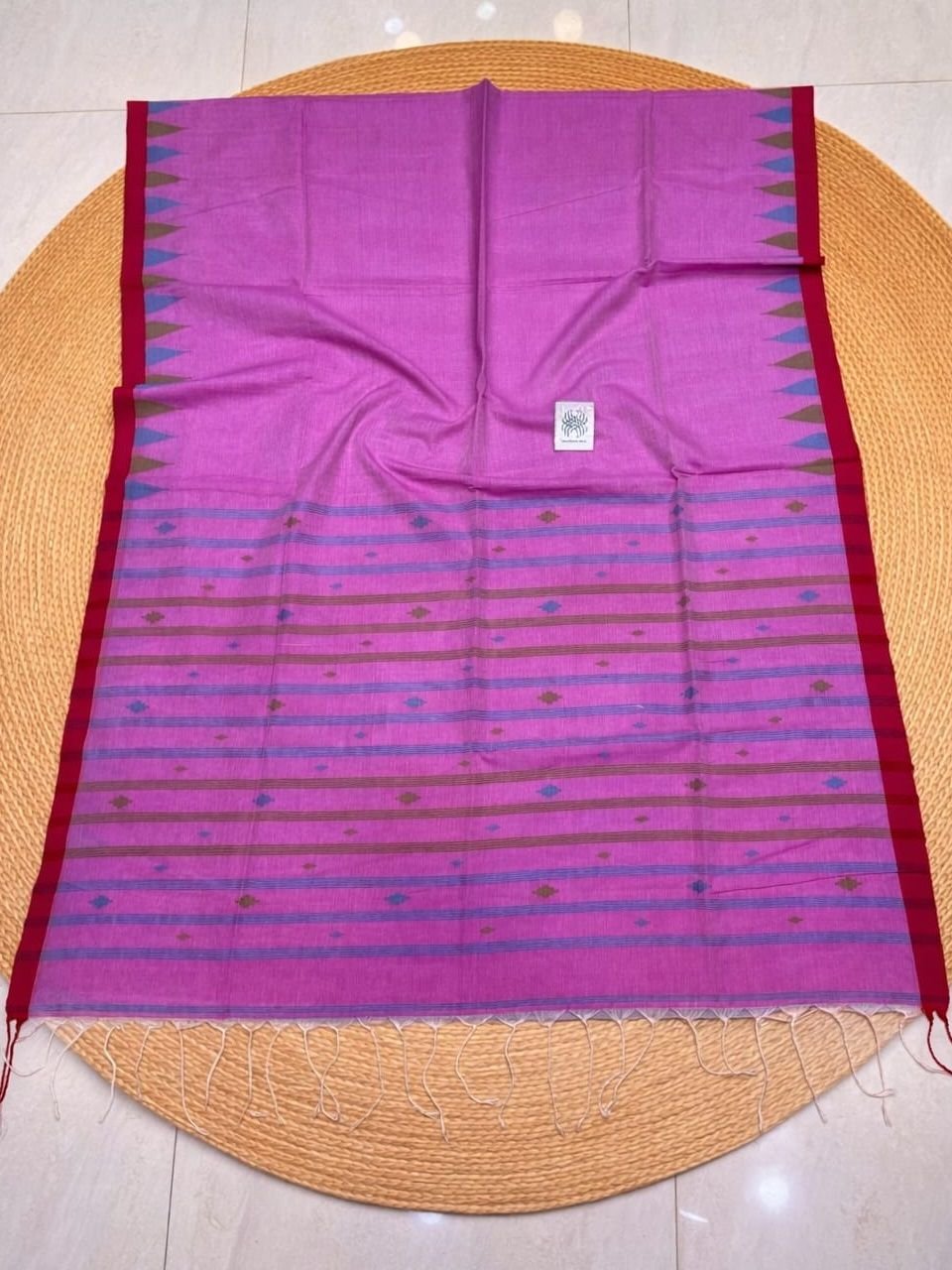 Pink Red Handloom Premium Cotton Needle Work Jamdani Saree