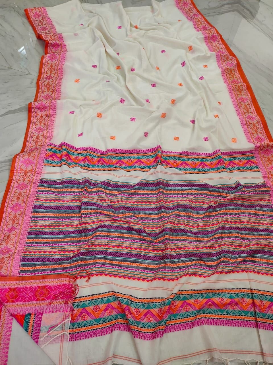 Pleasant White Handwoven Cotton Saree With Exclusively Woven Border Pallu