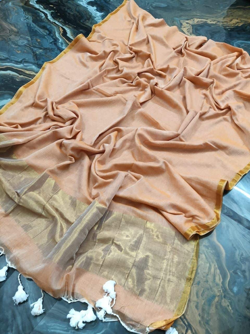 Pretty Peach Soft Mul Cotton Saree With Thin Borders