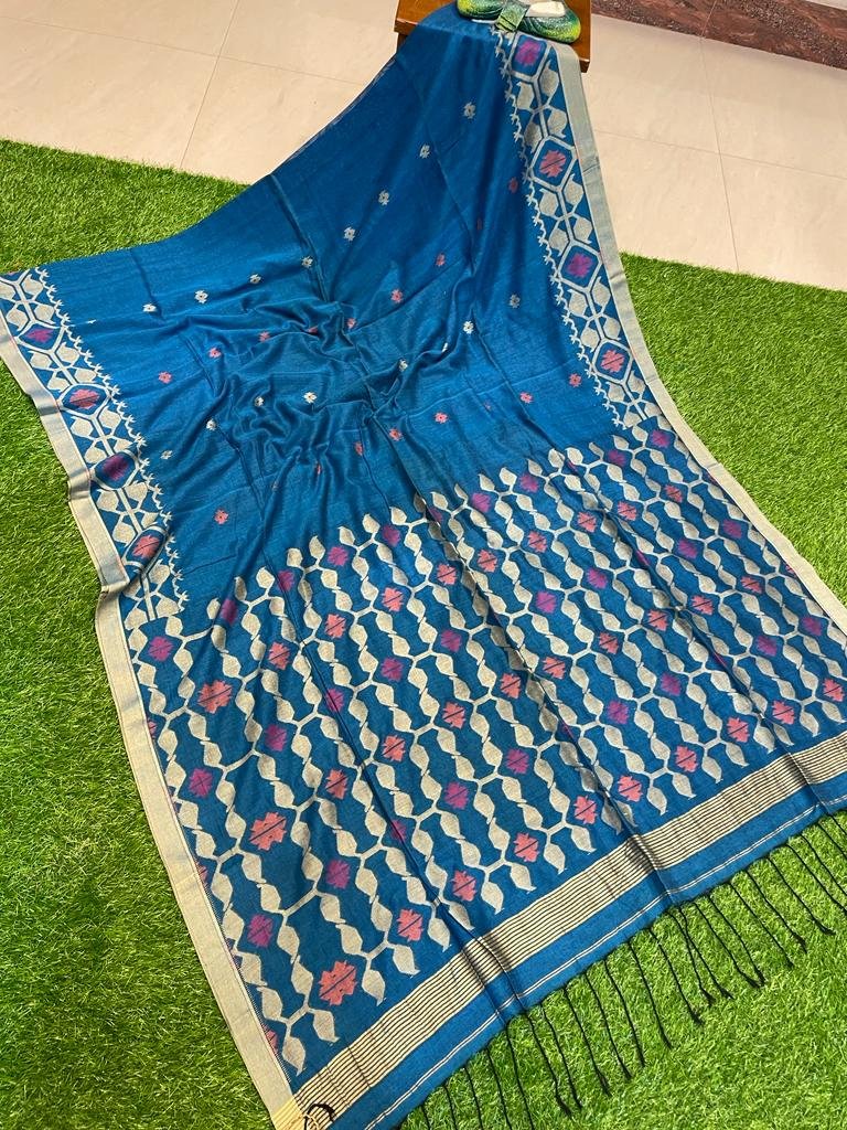 Royal Blue Pure Cotton Minakari Jamdani Handwoven Saree