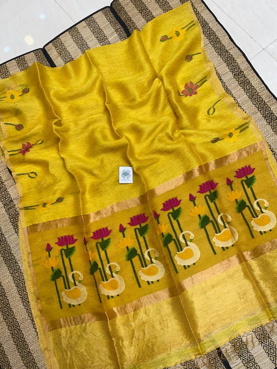 Yellow Premium Quality Tissue Linen Saree With Paithani Pallu